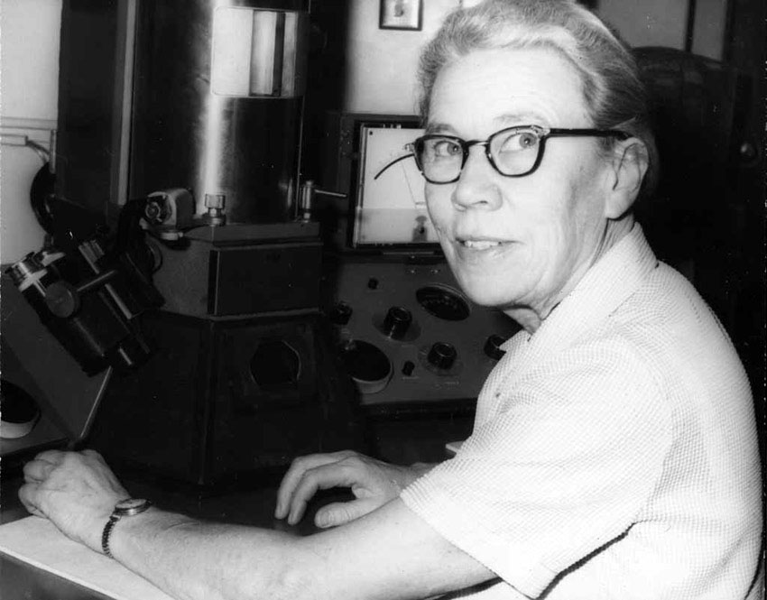 Esau seated at an electron microscope